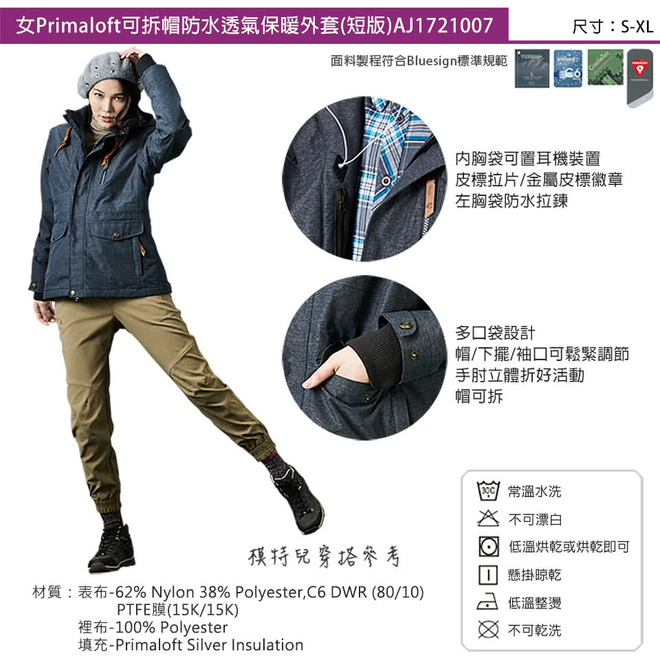 【ADISI】女Primaloft可拆帽防水透氣保暖外套-短版AJ1721007(軍裝外套、保暖棉、防風)